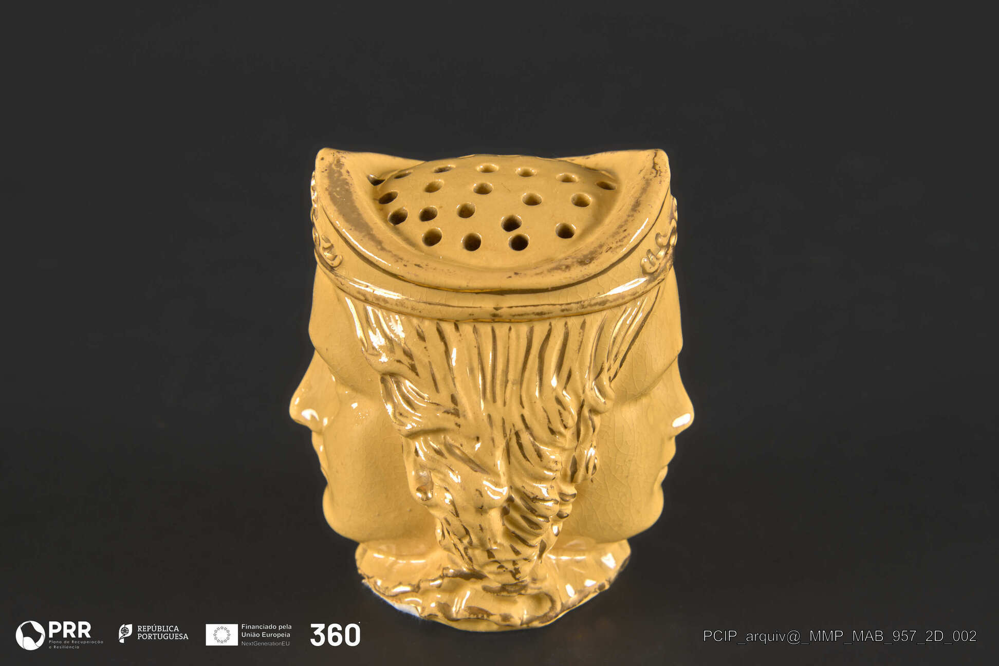 Matéria/Técnica: Peça em faiança moldada, vidrada e pintada; Cronologia: Desconhecida; Autoria: Desconhecida; Dimensões: Desconhecidas.