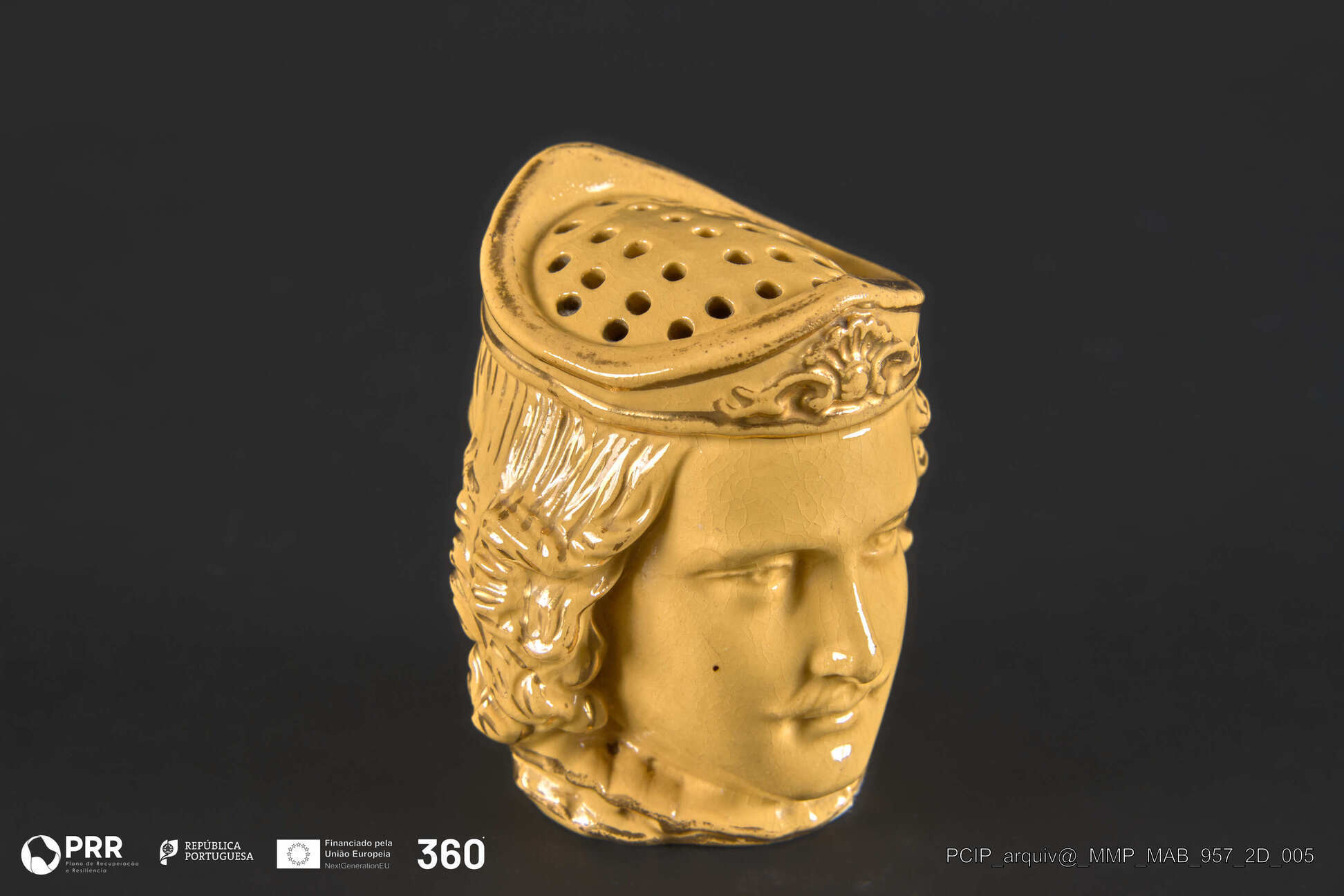 Matéria/Técnica: Peça em faiança moldada, vidrada e pintada; Cronologia: Desconhecida; Autoria: Desconhecida; Dimensões: Desconhecidas.