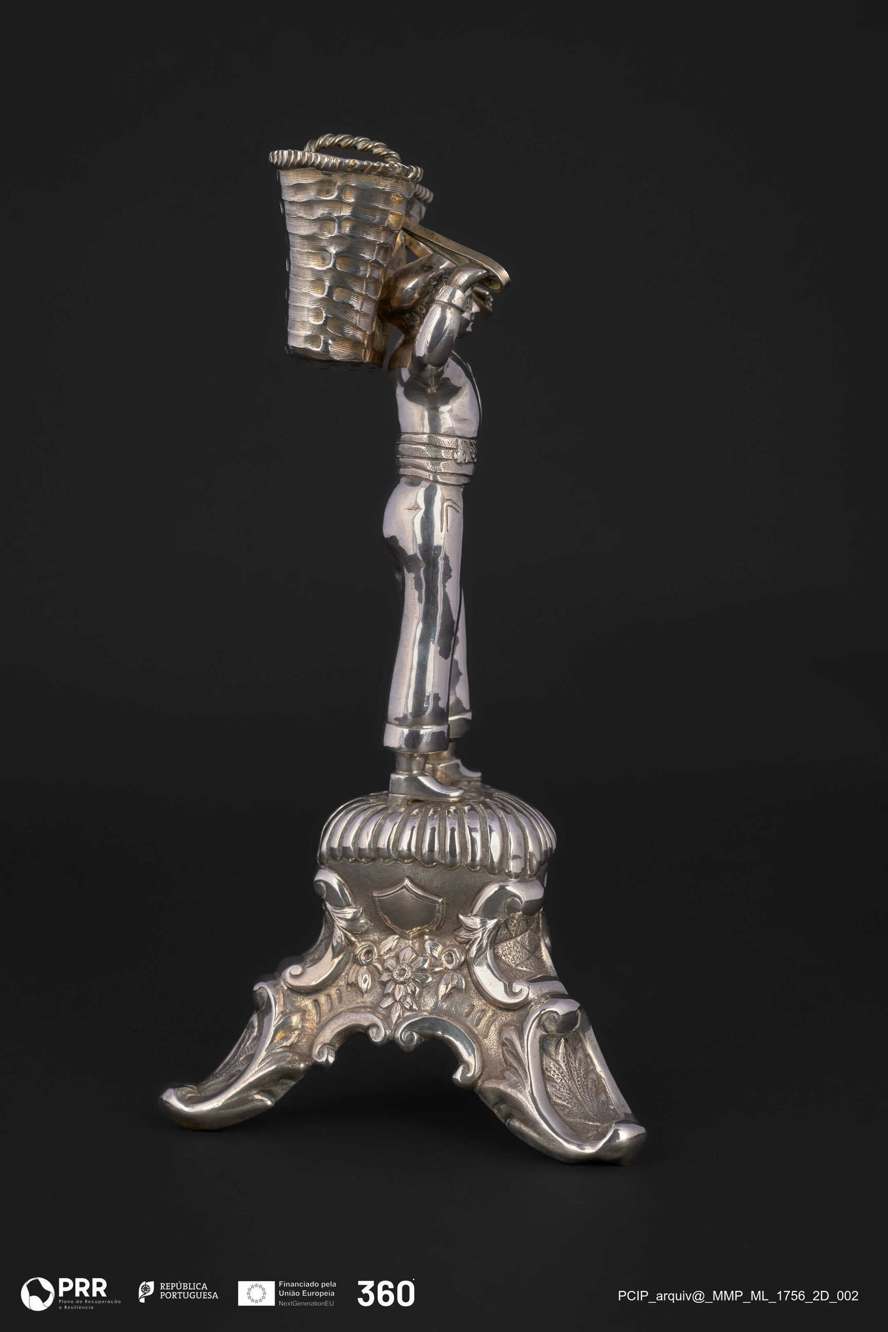 Matéria/Técnica: Prata relevada e incisa; Cronologia: 1901-1925; Autoria: Desconhecida; Dimensões (cm): Altura: 20,5.