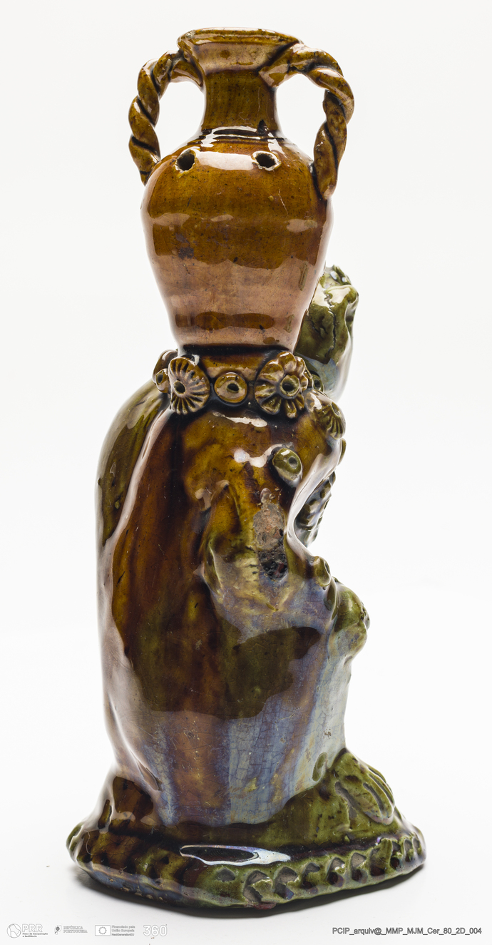 Matéria/Técnica: Faiança; Cronologia: Desconhecida; Autoria: Sem marca (atribuído a Maria dos Cacos); Dimensões: Altura: 19 cm.