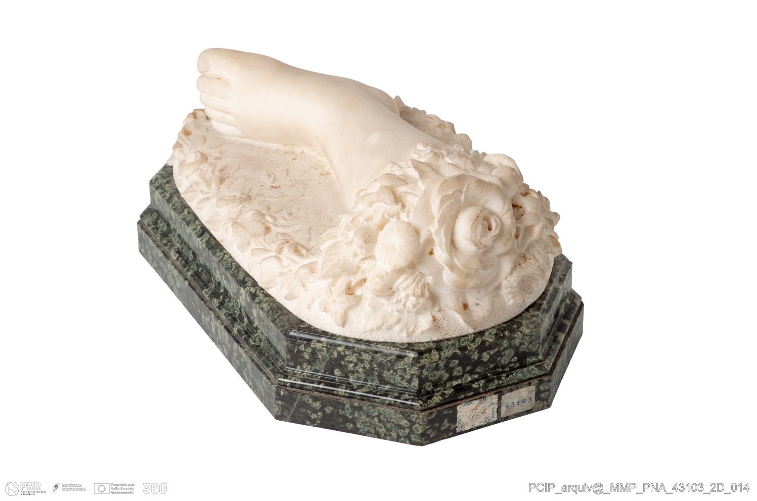 Matéria/Técnica: Mármore; Cronologia: Século XIX; Autoria: Sighinolfi, Cesare (1835-1903) atribuível; Dimensões (cm): Altura: 9,5; Largura: 18; Comprimento: 28.
