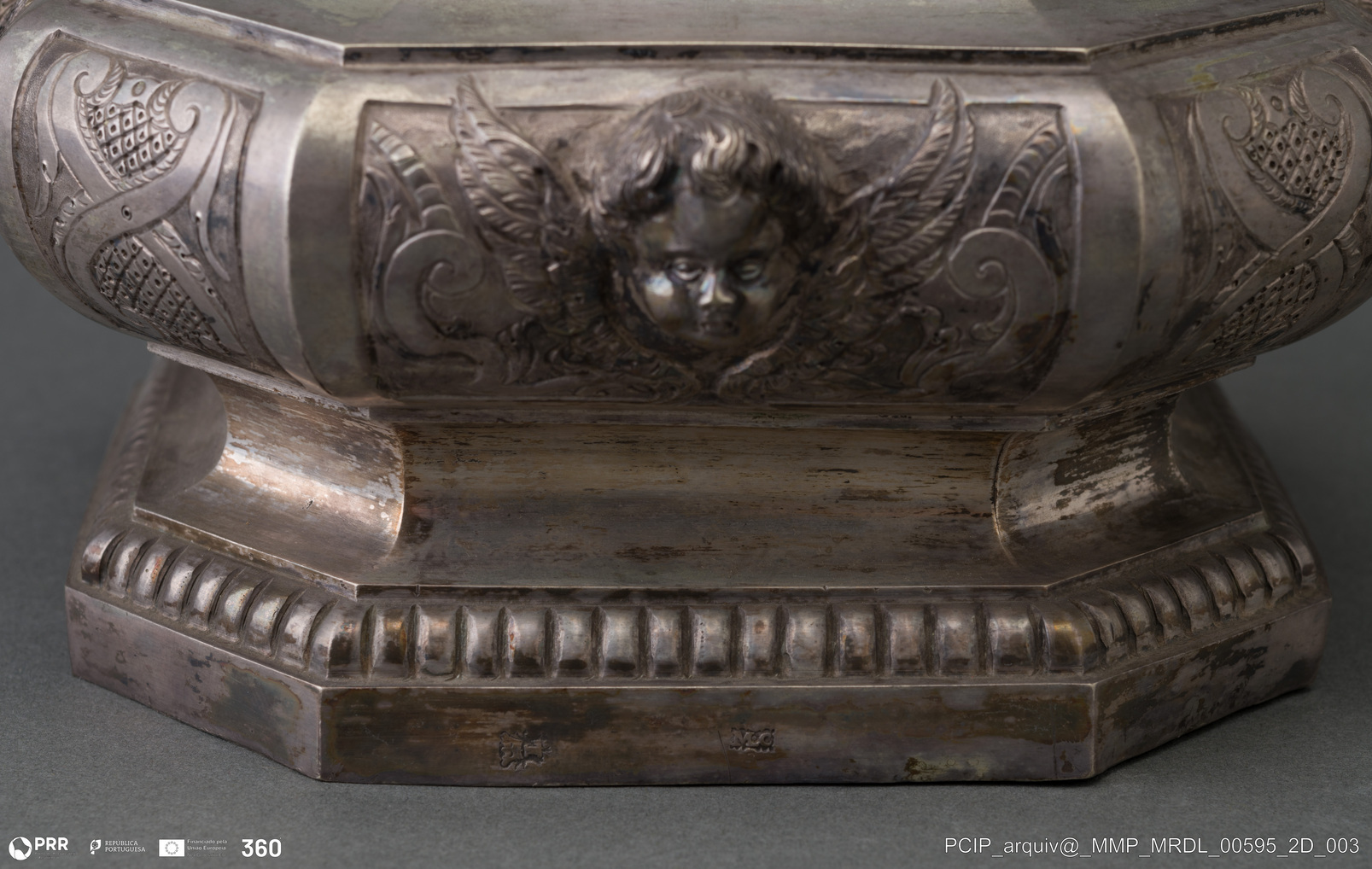 Matéria/Técnica: Prata e madeira; Cronologia: Desconhecida; Autoria: Desconhecida; Dimensões: Altura: 20,80 cm; Comprimento: 18,70 cm; Peso: 1.883,00 gr.
