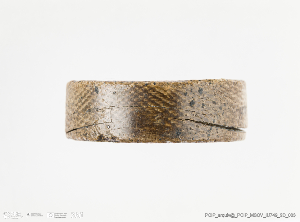 Matéria/Técnica: Madeira; Cronologia: Século XVII; Autoria: Desconhecida; Dimensões: Diâmetro: 39 mm; Altura: 11 mm.