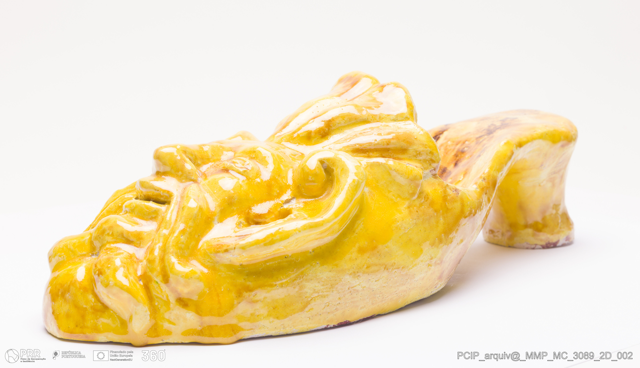 Matéria/Técnica: Grés modelado. Vidrado amarelo ferro; Cronologia: 2001; Autoria: Bela Silva / Atelier de Bela Silva, Lisboa, Portugal; Dimensões (cm): Altura: 10; Largura: 30; Comprimento: 15.
