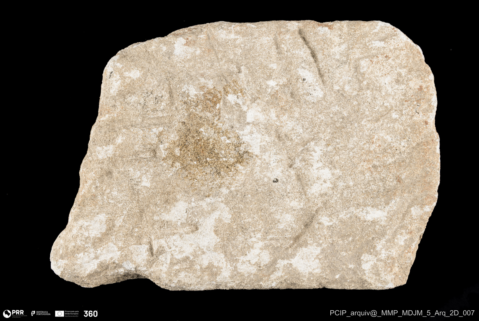 Matéria/Técnica: Pedra calcária; Cronologia: Paleo-Cristã; Autoria: Desconhecida; Dimensões: Altura: 31 cm x Largura: 39,5 cm.