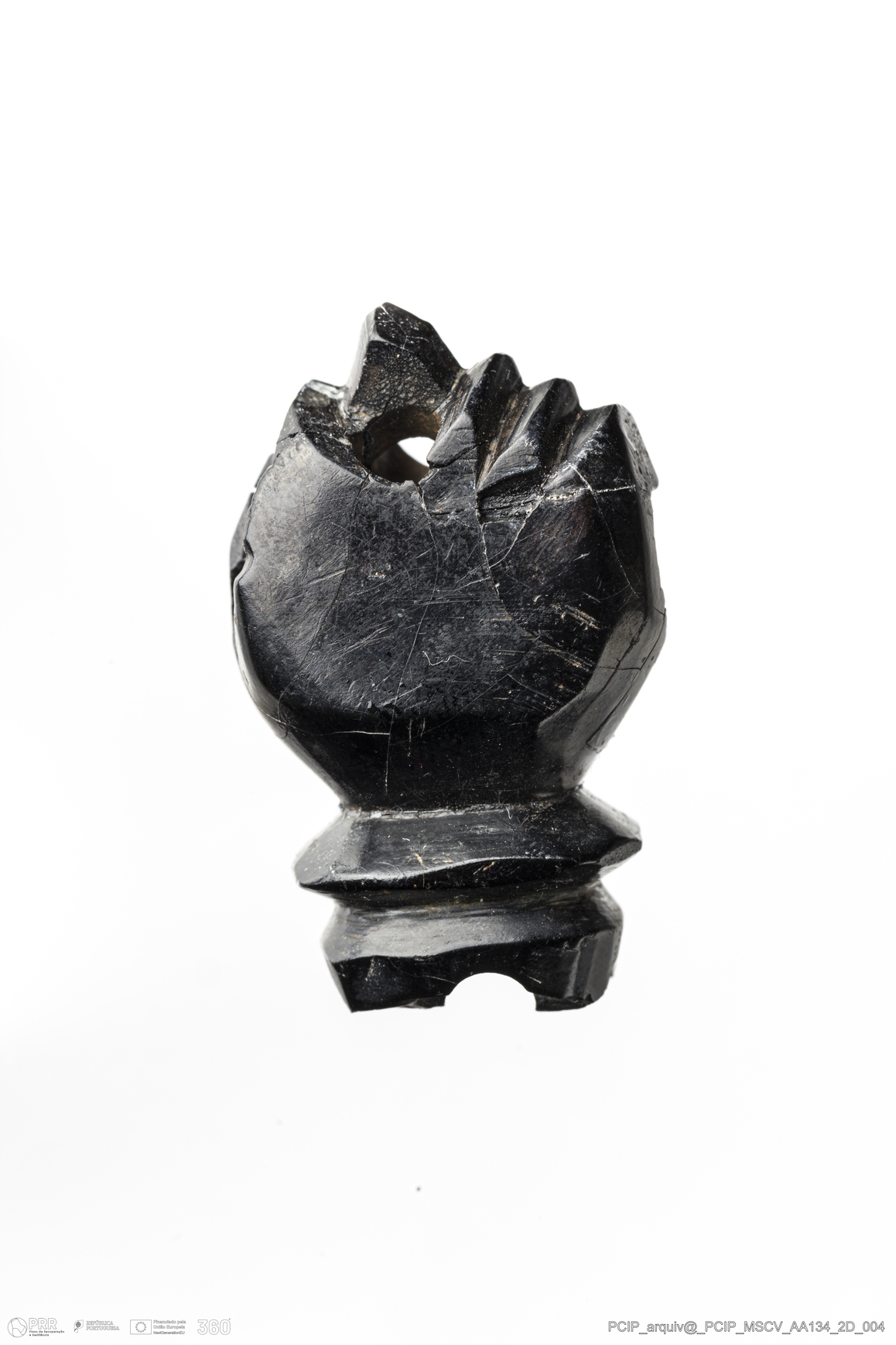 Matéria/Técnica: Azeviche; Cronologia: Século XVI-XVII; Autoria: Desconhecida; Dimensões: Largura: 5mm Altura / Espessura: 5mm Comprimento / Profundidade: 12 mm.