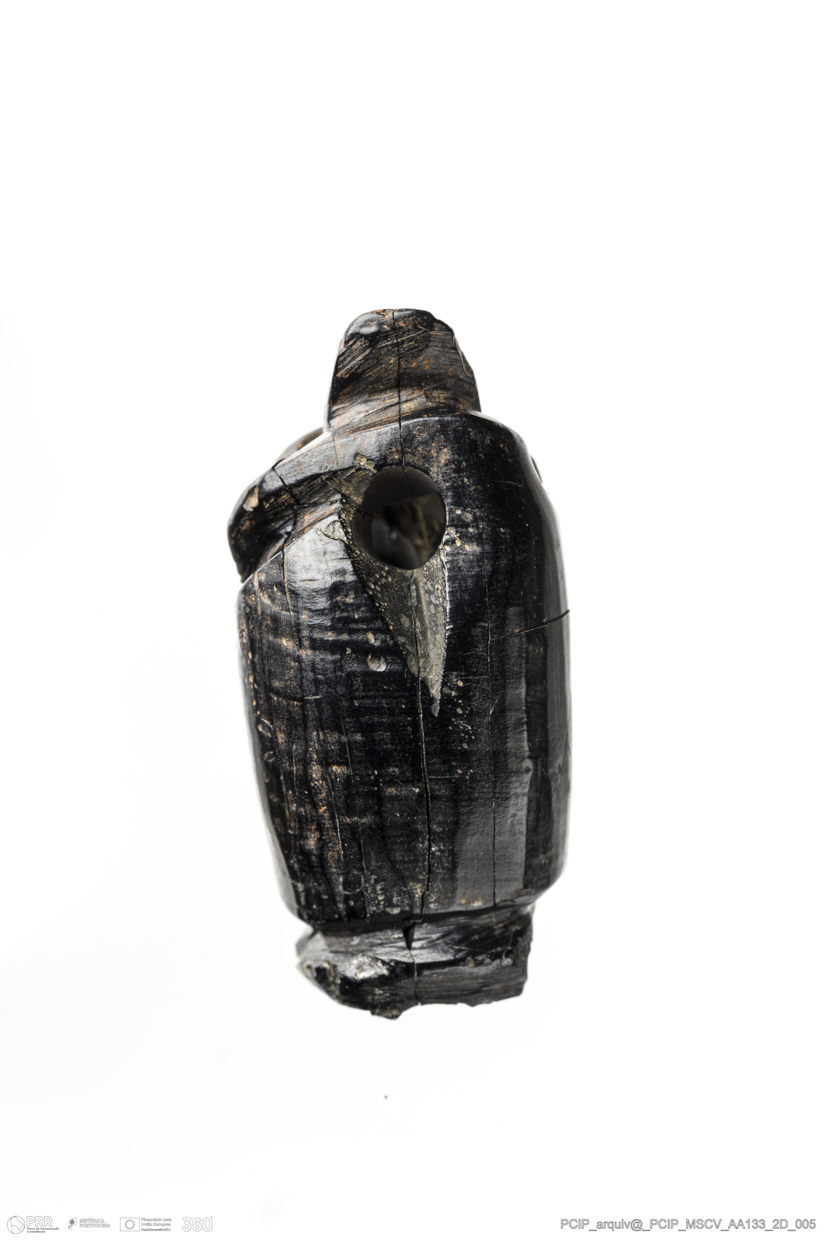 Matéria/Técnica: Azeviche; Cronologia: Século XVI-XVII; Autoria: Desconhecida; Dimensões: Largura: 8mm Altura / Espessura: 6mm Comprimento / Profundidade: 18 mm.