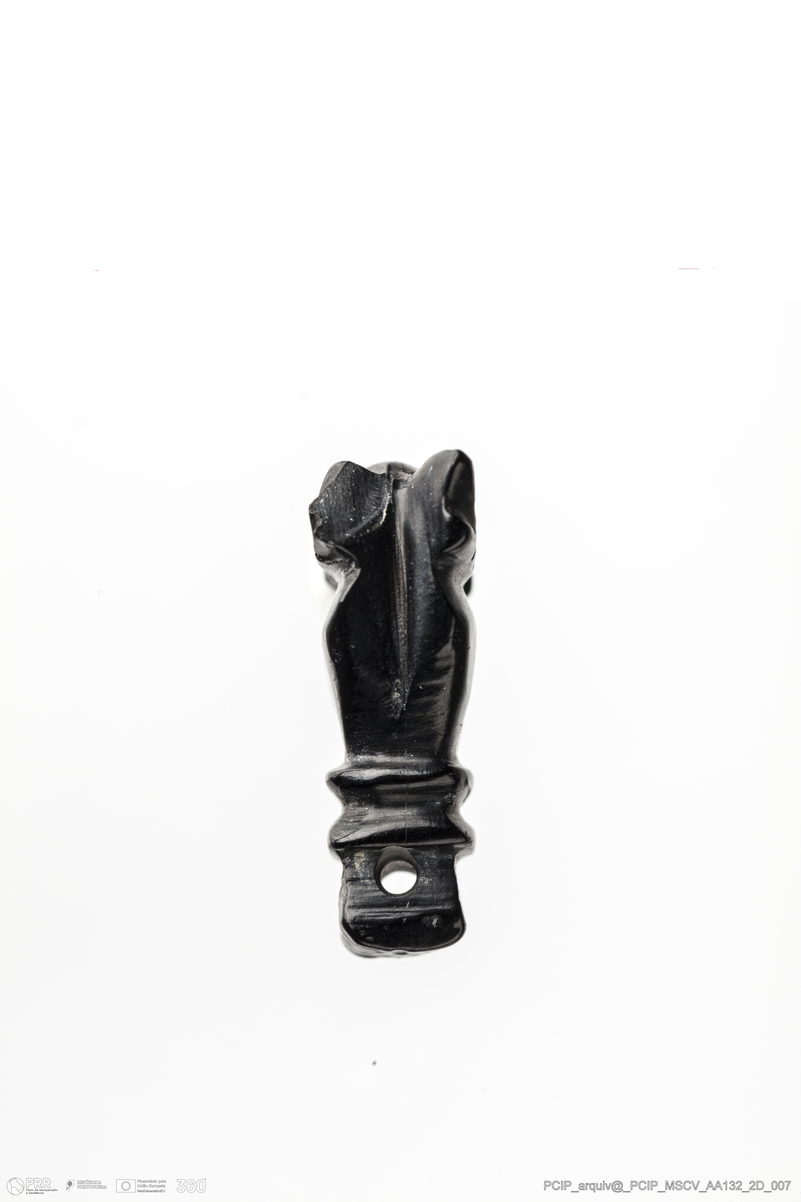 Matéria/Técnica: Azeviche; Cronologia: Século XVI-XVII; Autoria: Desconhecida; Dimensões: Largura: 14mm Altura / Espessura: 5mm Comprimento / Profundidade: 16mm.