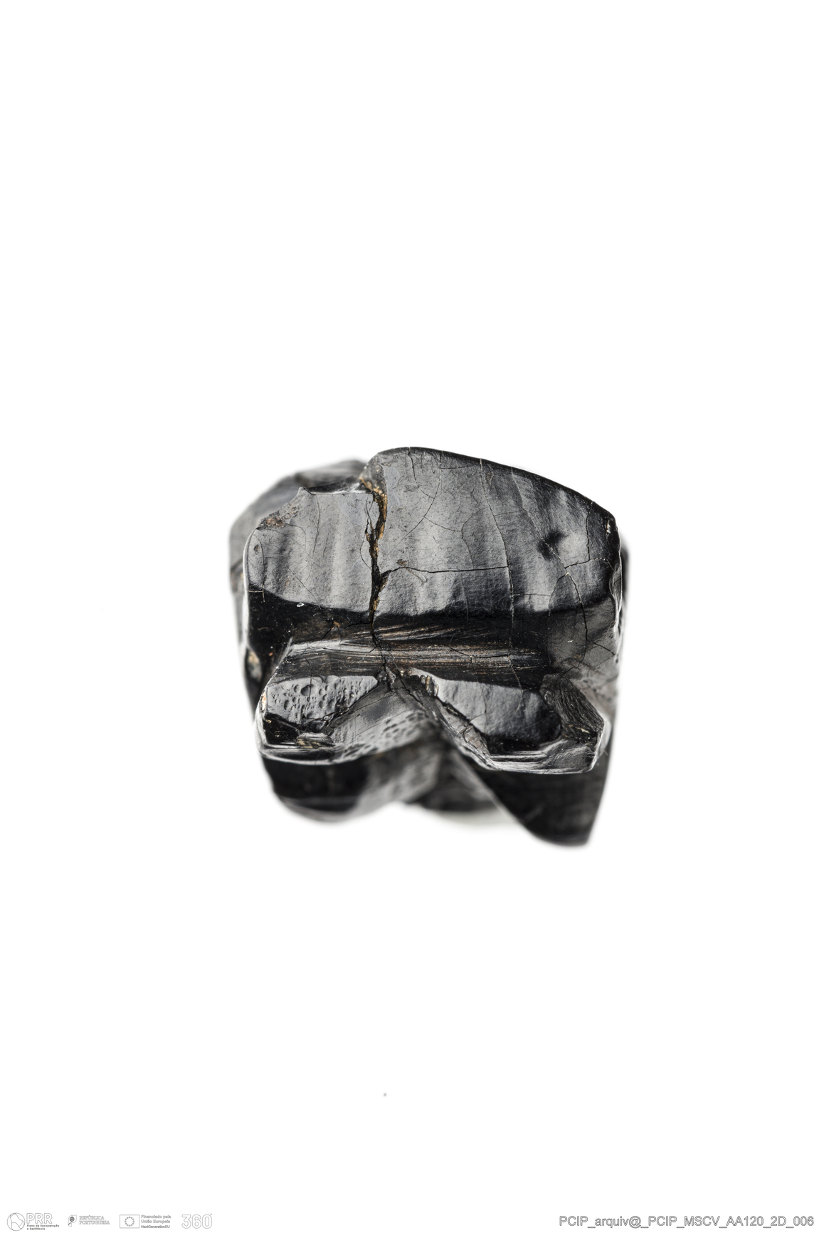 Matéria/Técnica: Azeviche; Cronologia: Século XVI-Século XVII; Autoria: Desconhecida; Dimensões: Comprimento: 20mm; largura: 15mm; Espessura: 13mm.