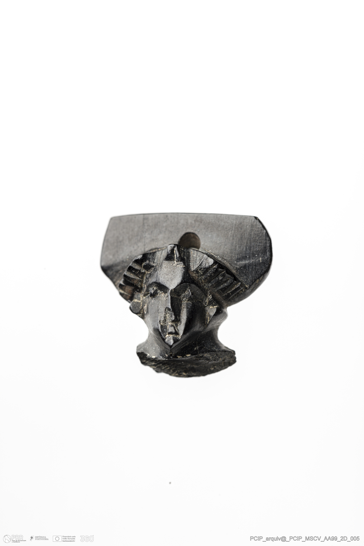 Matéria/Técnica: Azeviche; Cronologia: Século XVI-XVII; Autoria: Desconhecida; Dimensões: Largura: 13mm Altura / Espessura: 6mm Comprimento / Profundidade: 13mm.