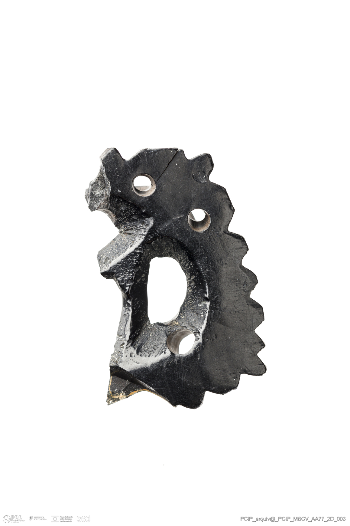 Matéria/Técnica: Azeviche; Cronologia: Século XVI-XVII; Autoria: Desconhecida; Dimensões: Largura: 37mm Altura / Espessura: 33mm .