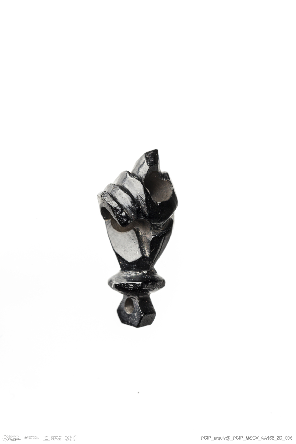 Matéria/Técnica: Azeviche; Cronologia: Século XVI-XVII; Autoria: Desconhecida; Dimensões: Largura: 21mm Altura / Espessura: 13mm Comprimento / Profundidade:35 mm.