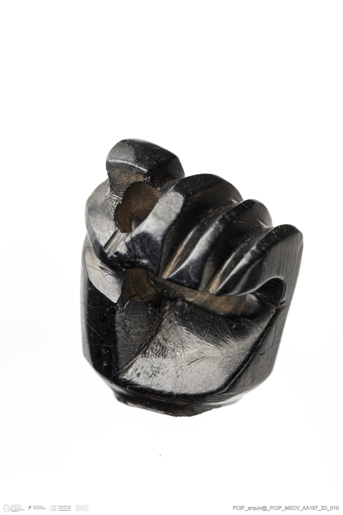 Matéria/Técnica: Azeviche; Cronologia: Século XVI-XVII; Autoria: Desconhecida; Dimensões: Largura: 18mm Altura / Espessura: 14mm Comprimento / Profundidade:22mm.