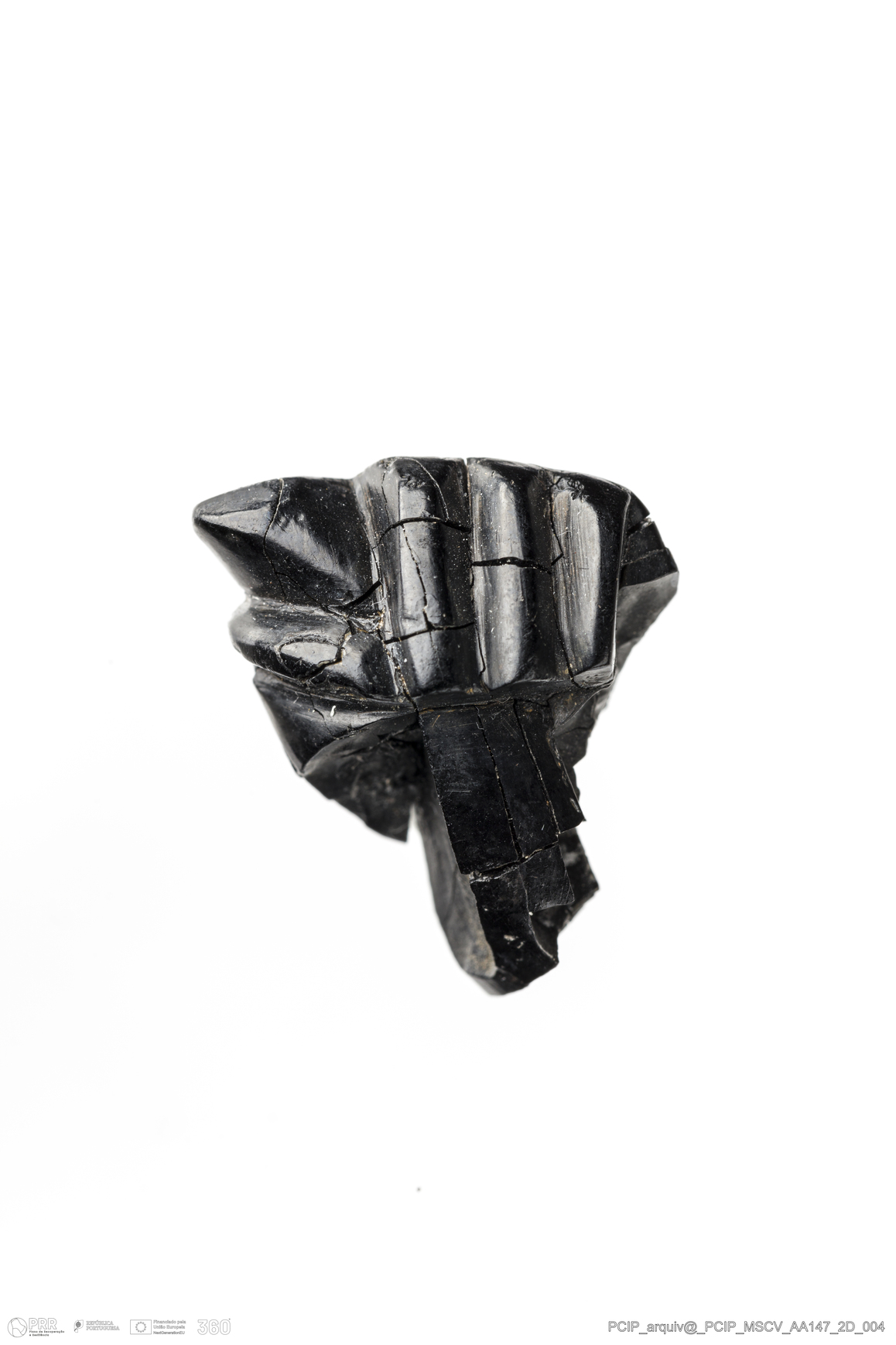 Matéria/Técnica: Azeviche; Cronologia: Século XVI-XVII; Autoria: Desconhecida; Dimensões: Largura: 17mm Altura / Espessura: 12mm Comprimento / Profundidade: 23mm.