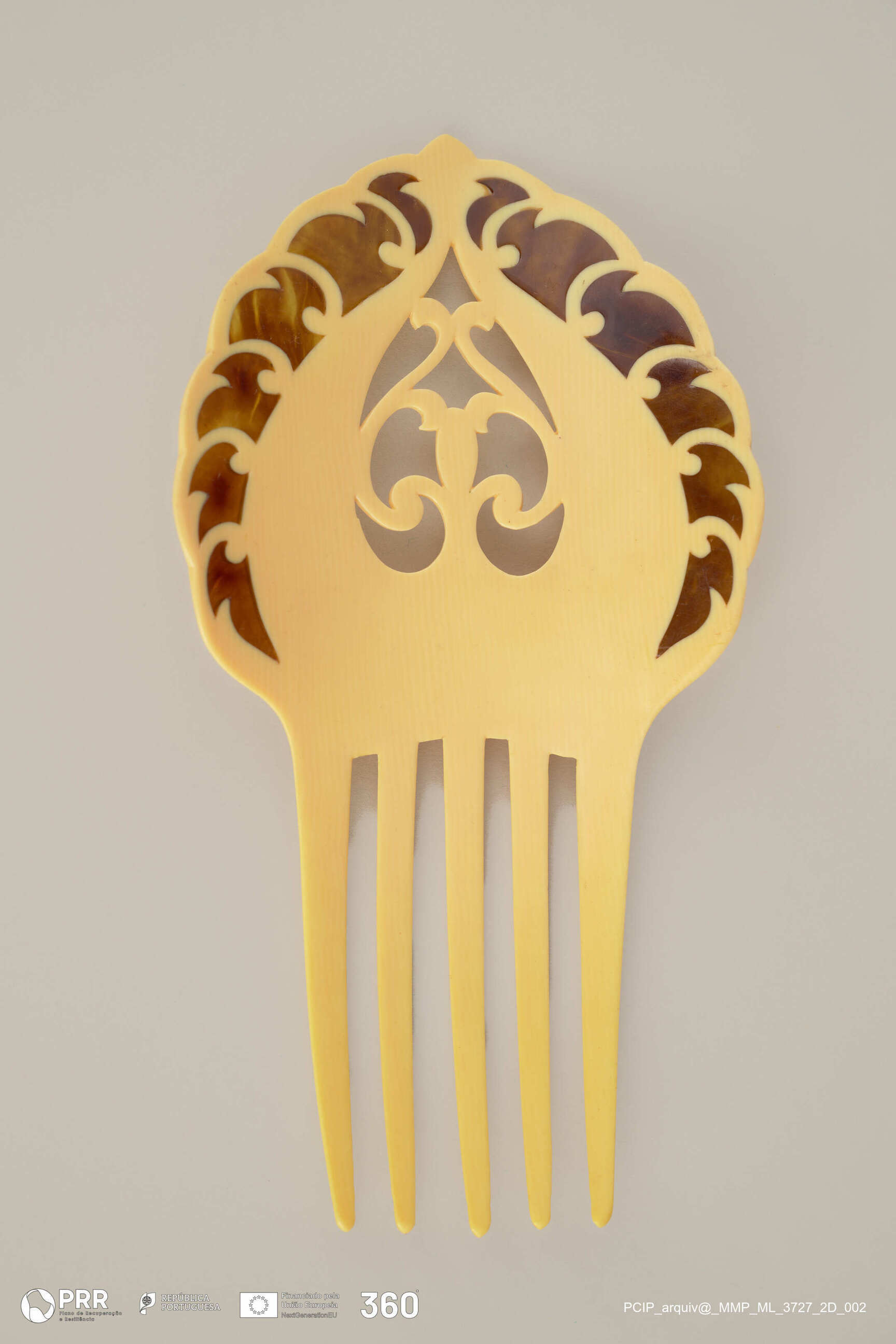Matéria/Técnica: Embutidos de casca de tartaruga; Cronologia: Época contemporânea; Autoria: Desconhecida; Dimensões (cm): Altura: 14,4 x Largura: 7,5.