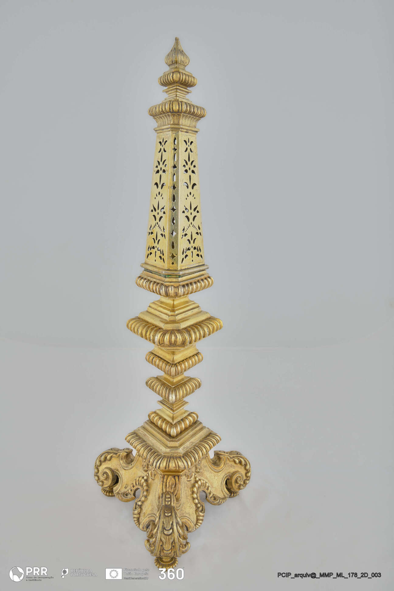 Matéria/Técnica: Dourada, relevada, cinzelada e vazada; Cronologia: Desconhecida; Autoria: Desconhecida; Dimensões: Desconhecidas.