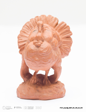 Matéria/Técnica: Terracota modelada. Monocozedura; Cronologia: 1908; Autoria: Francisco Elias / Caldas da Rainha, Portugal; Dimensões (cm): Altura: 4; Largura: 4,5; Comprimento: 4,5.