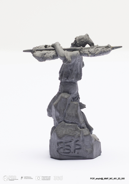 Matéria/Técnica: Barro cinzento modelado. Monocozedura; Cronologia: 1901; Autoria: Rafael Bordalo Pinheiro / Fábrica de Faianças das Caldas da Rainha, Portugal; Dimensões (cm): Altura: 5; Largura: 6,5; Comprimento: 5.