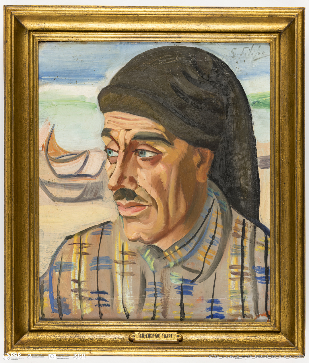 Matéria/Técnica: Óleo sobre madeira; Cronologia: Séc. XX; Autoria: Guilherme Filipe; Dimensões: Altura: 43 cm x Largura: 36 cm.