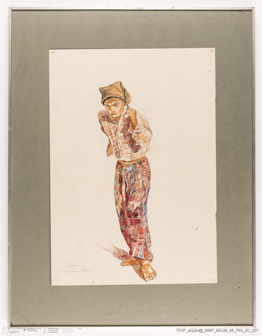 Matéria/Técnica: Aguarela sobre papel; Cronologia: 1958; Autoria: Irene Sá Vieira Natividade; Dimensões: Altura: 50 cm x Largura: 35 cm.
