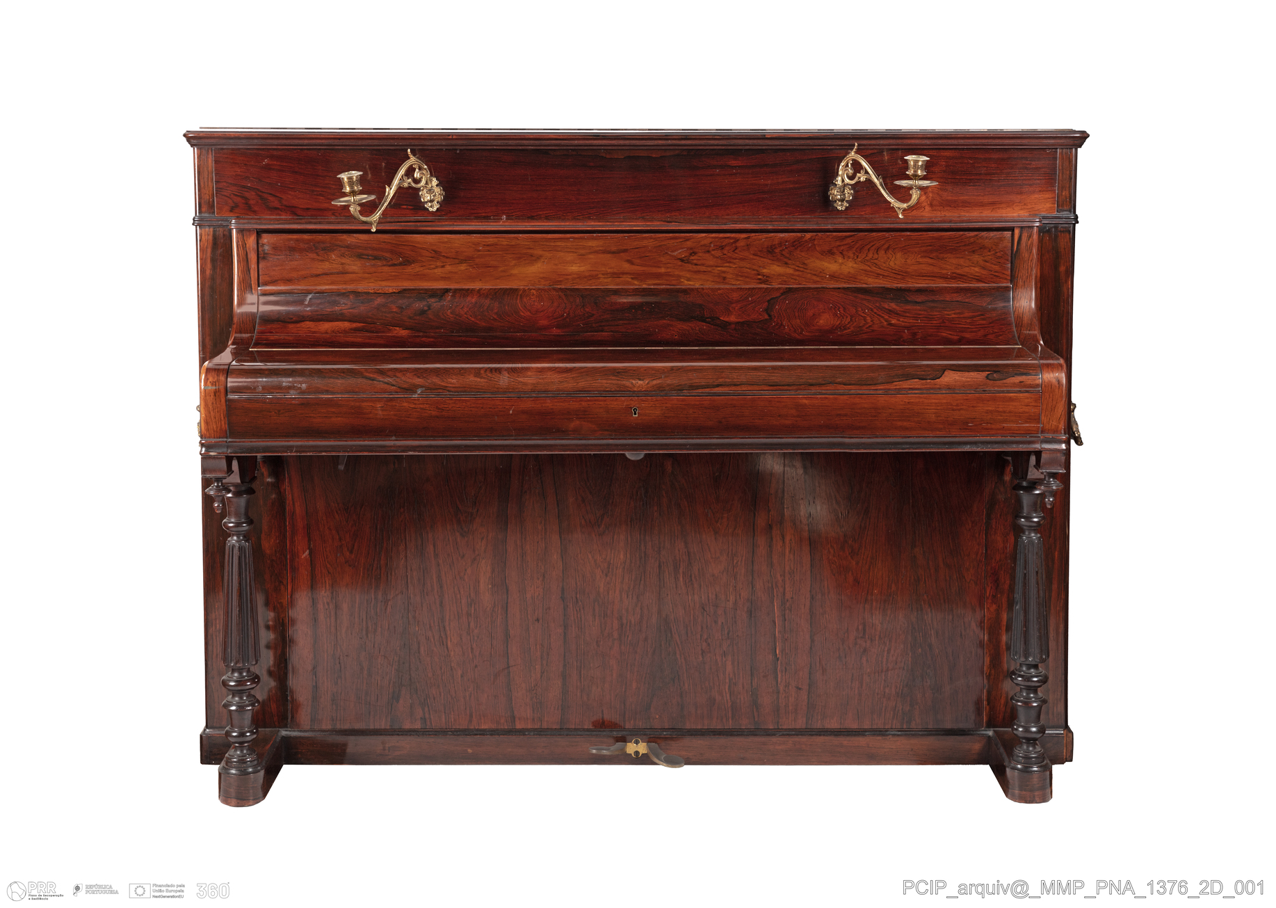 Matéria/Técnica: Madeira, metal, ébano, marfim; Cronologia: 1850 - 1875; Autoria: Desconhecida; Dimensões (cm): Altura: 114; Largura: 58; Comprimento: 156.