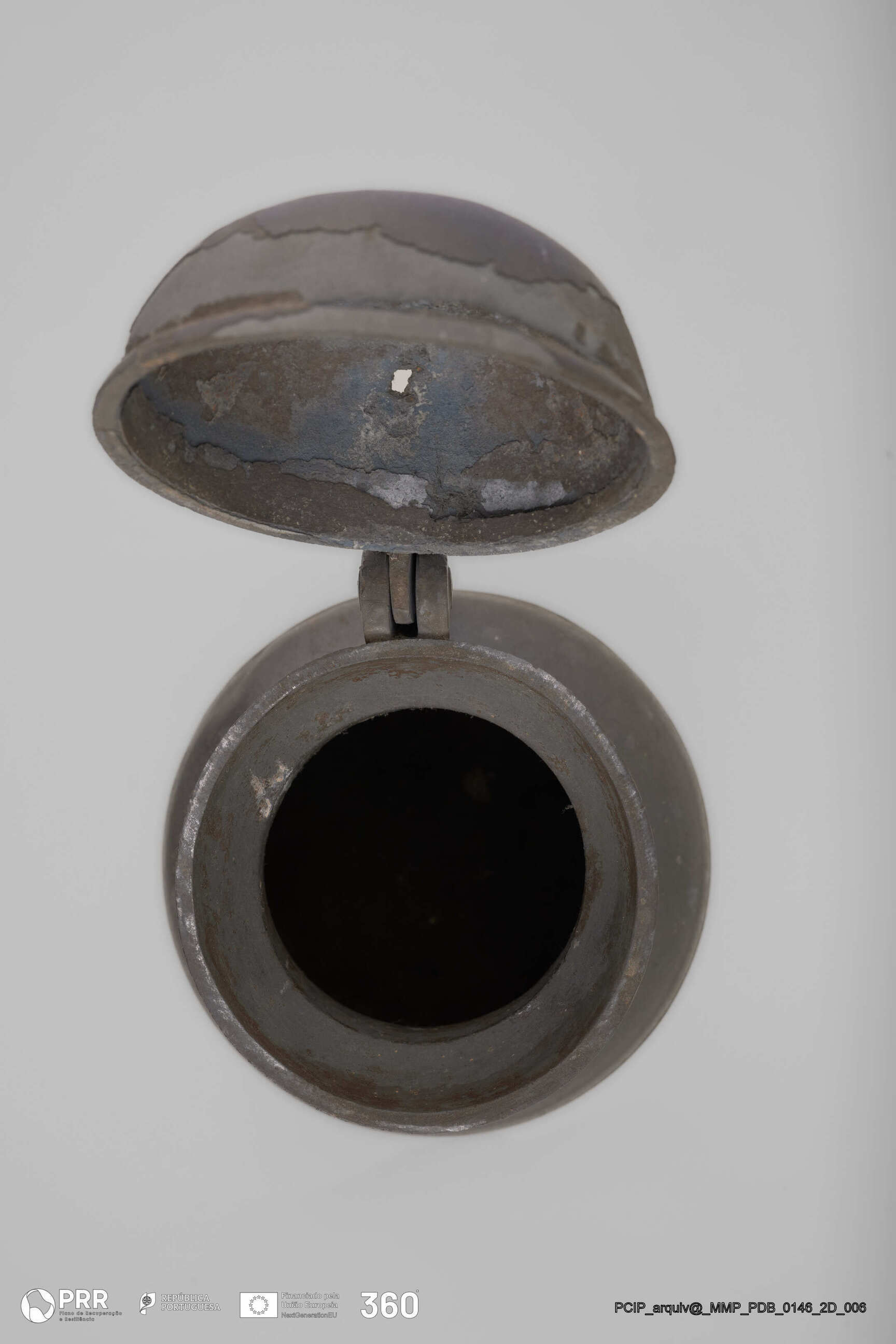 Matéria/Técnica: Desconhecida; Cronologia: Século XVII; Autoria: Desconhecida; Dimensões (cm): Altura: 25,5; Diâmetro: 14,5.