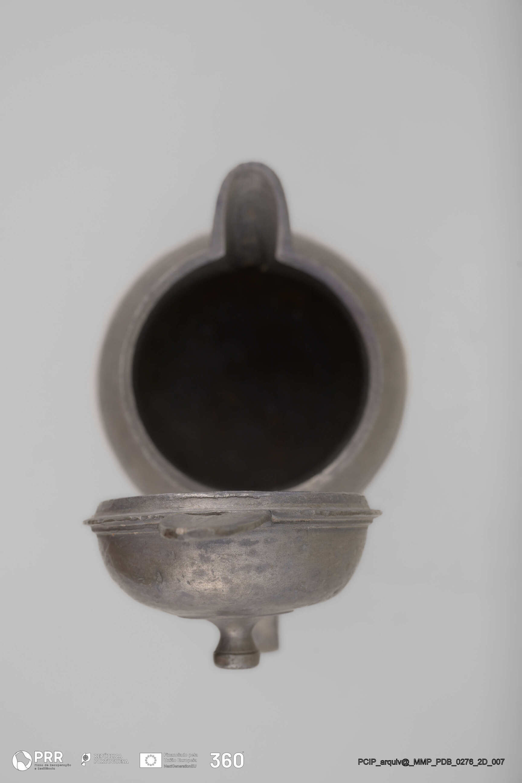 Matéria/Técnica: Desconhecida; Cronologia: Século XVII; Autoria: Desconhecida; Dimensões (cm): Altura: 21,3; Diâmetro: Base - 9.
