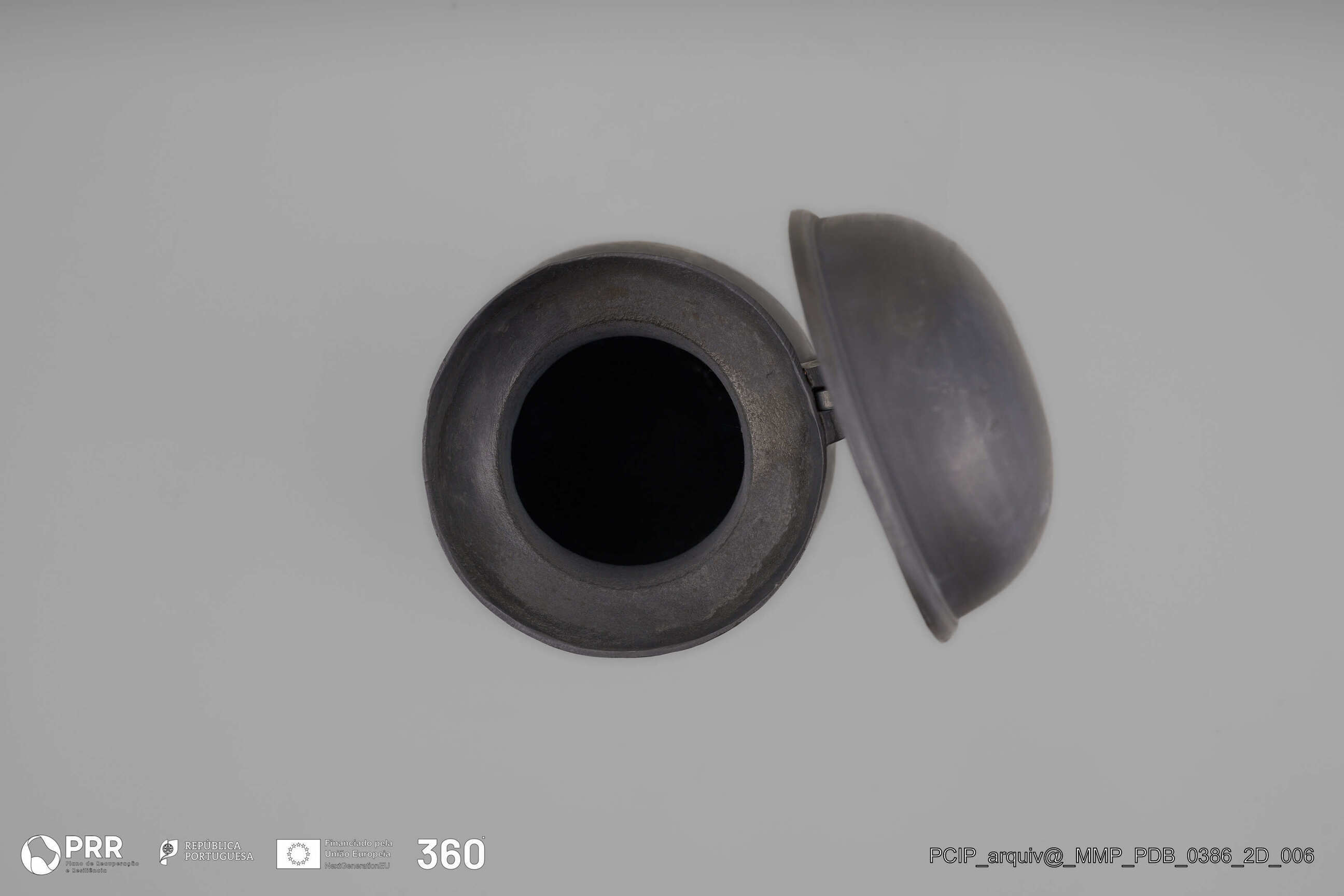 Matéria/Técnica: Desconhecida; Cronologia: Século XVII; Autoria: Desconhecida; Dimensões (cm): Altura: 22,7; Diâmetro: 11,3.