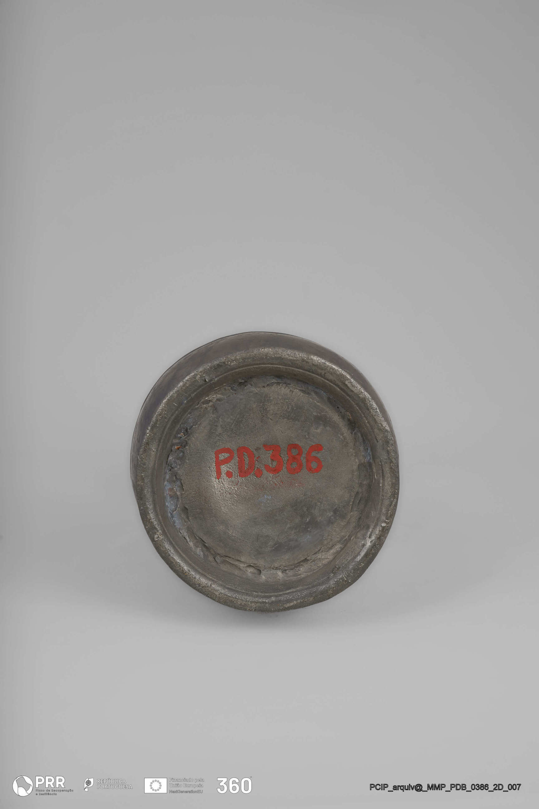 Matéria/Técnica: Desconhecida; Cronologia: Século XVII; Autoria: Desconhecida; Dimensões (cm): Altura: 22,7; Diâmetro: 11,3.