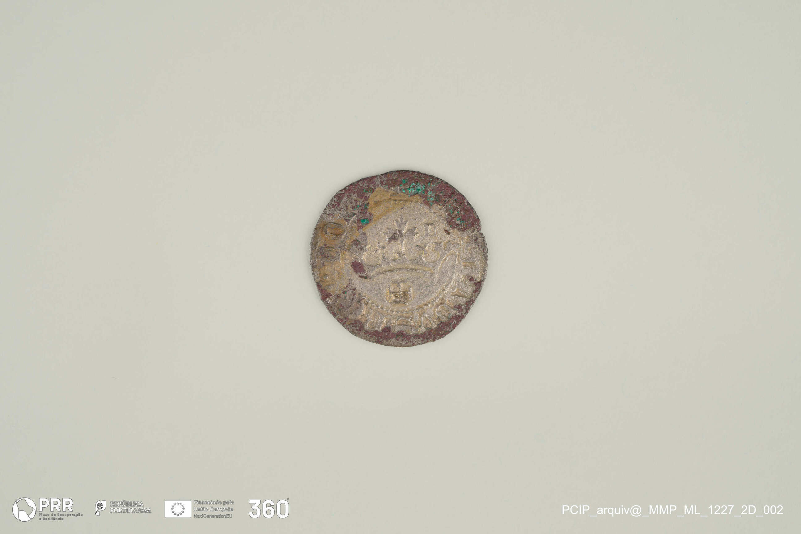 Matéria/Técnica: Batida a martelo; Cronologia: 1367-1383; Autoria: Desconhecida; Dimensões (cm): Diâmetro: 1,9.