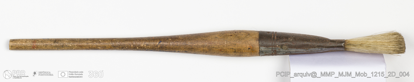 Matéria/Técnica: Madeira, metal e rama; Cronologia: Desconhecida; Autoria: Desconhecida; Dimensões: Comprimento: 38 cm.
