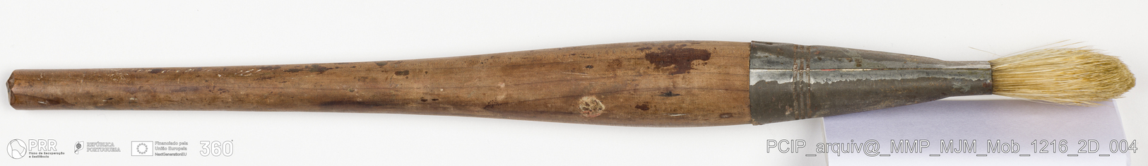 Matéria/Técnica: Madeira, metal e rama; Cronologia: Desconhecida; Autoria: Desconhecida; Dimensões: Comprimento: 35 cm.