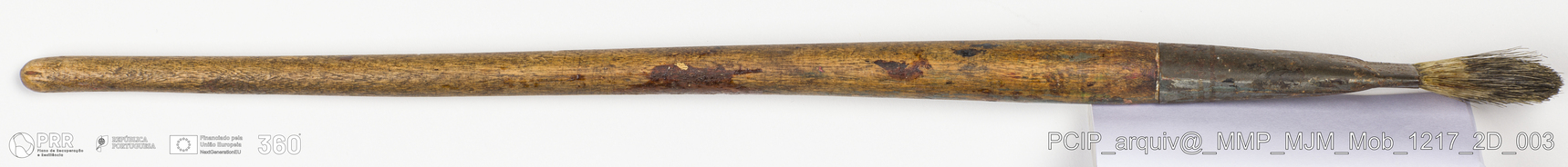 Matéria/Técnica: Madeira, metal e rama; Cronologia: Desconhecida; Autoria: Desconhecida; Dimensões: Comprimento: 37 cm.