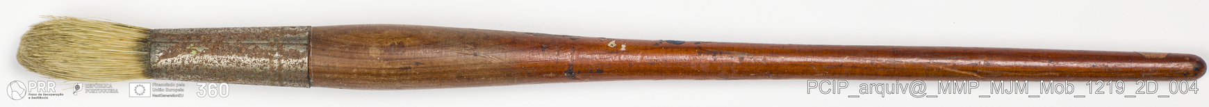 Matéria/Técnica: Madeira, metal e rama; Cronologia: Desconhecida; Autoria: Desconhecida; Dimensões: Comprimento: 37,5 cm.