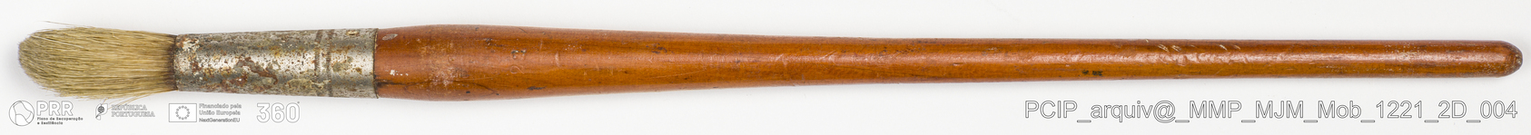 Matéria/Técnica: Madeira, metal e rama; Cronologia: Desconhecida; Autoria: Desconhecida; Dimensões: Comprimento: 36,3 cm.