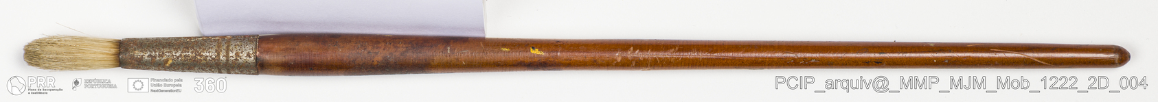 Matéria/Técnica: Madeira, metal e rama; Cronologia: Desconhecida; Autoria: Desconhecida; Dimensões: Comprimento: 35,4 cm.