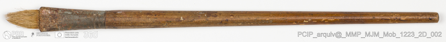 Matéria/Técnica: Madeira, metal e rama; Cronologia: Desconhecida; Autoria: Desconhecida; Dimensões: Comprimento: 32,2 cm.