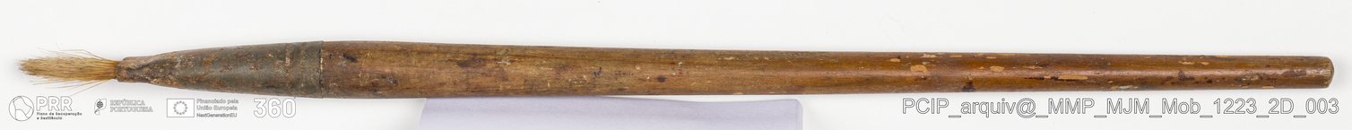 Matéria/Técnica: Madeira, metal e rama; Cronologia: Desconhecida; Autoria: Desconhecida; Dimensões: Comprimento: 32,2 cm.