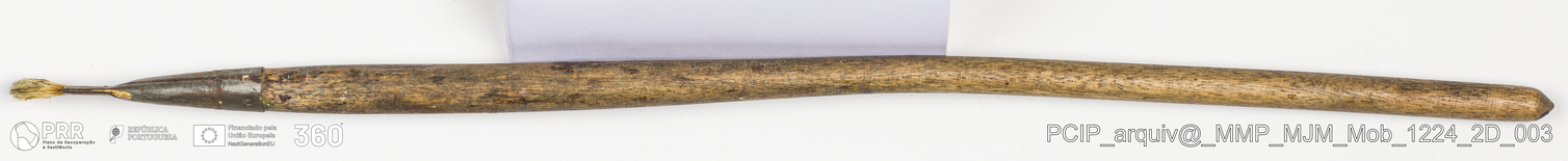 Matéria/Técnica: Madeira, metal e rama; Cronologia: Desconhecida; Autoria: Desconhecida; Dimensões: Comprimento: 32,7 cm.