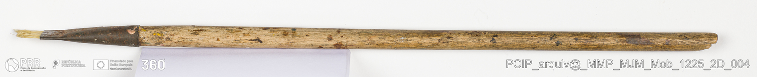 Matéria/Técnica: Madeira, metal e rama; Cronologia: Desconhecida; Autoria: Desconhecida; Dimensões: Comprimento: 30,8 cm.