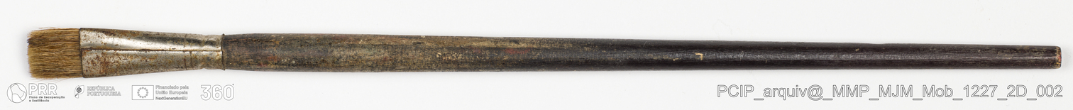 Matéria/Técnica: Madeira, metal e rama; Cronologia: Desconhecida; Autoria: Desconhecida; Dimensões: Comprimento: 32 cm.