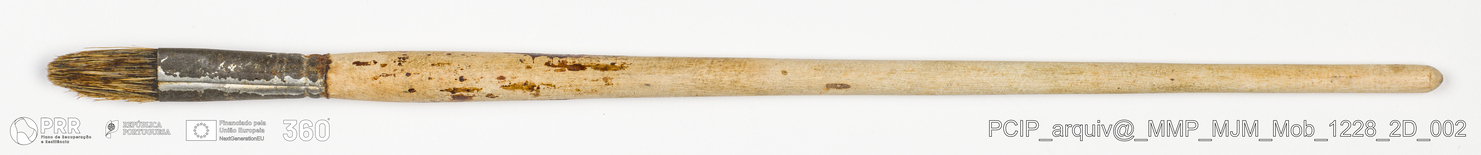 Matéria/Técnica: Madeira, metal e rama; Cronologia: Desconhecida; Autoria: Desconhecida; Dimensões: Comprimento: 30,6 cm.