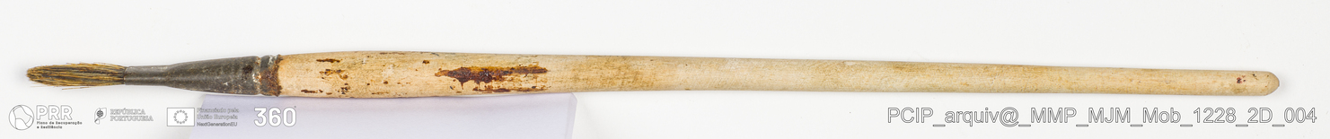 Matéria/Técnica: Madeira, metal e rama; Cronologia: Desconhecida; Autoria: Desconhecida; Dimensões: Comprimento: 30,6 cm.