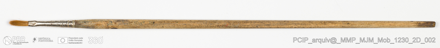 Matéria/Técnica: Madeira, metal e rama; Cronologia: Desconhecida; Autoria: Desconhecida; Dimensões: Comprimento: 30,2 cm.