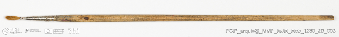 Matéria/Técnica: Madeira, metal e rama; Cronologia: Desconhecida; Autoria: Desconhecida; Dimensões: Comprimento: 30,2 cm.