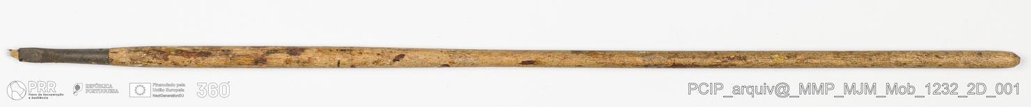 Matéria/Técnica: Madeira, metal e rama; Cronologia: Desconhecida; Autoria: Desconhecida; Dimensões: Comprimento: 32,1 cm.