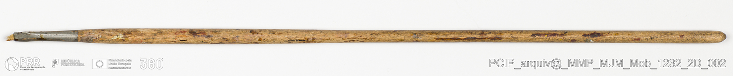 Matéria/Técnica: Madeira, metal e rama; Cronologia: Desconhecida; Autoria: Desconhecida; Dimensões: Comprimento: 32,1 cm.