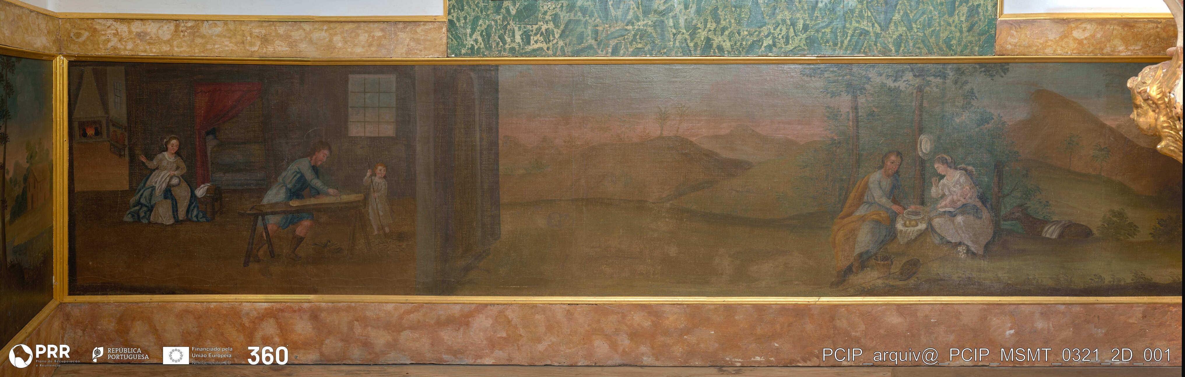 Matéria/Técnica: Tintas a óleo sobre tela / Pintura; Cronologia: 1783-1786; Autoria: Frei José Teixeira Barreto; Dimensões (cm): 65 x 340.
