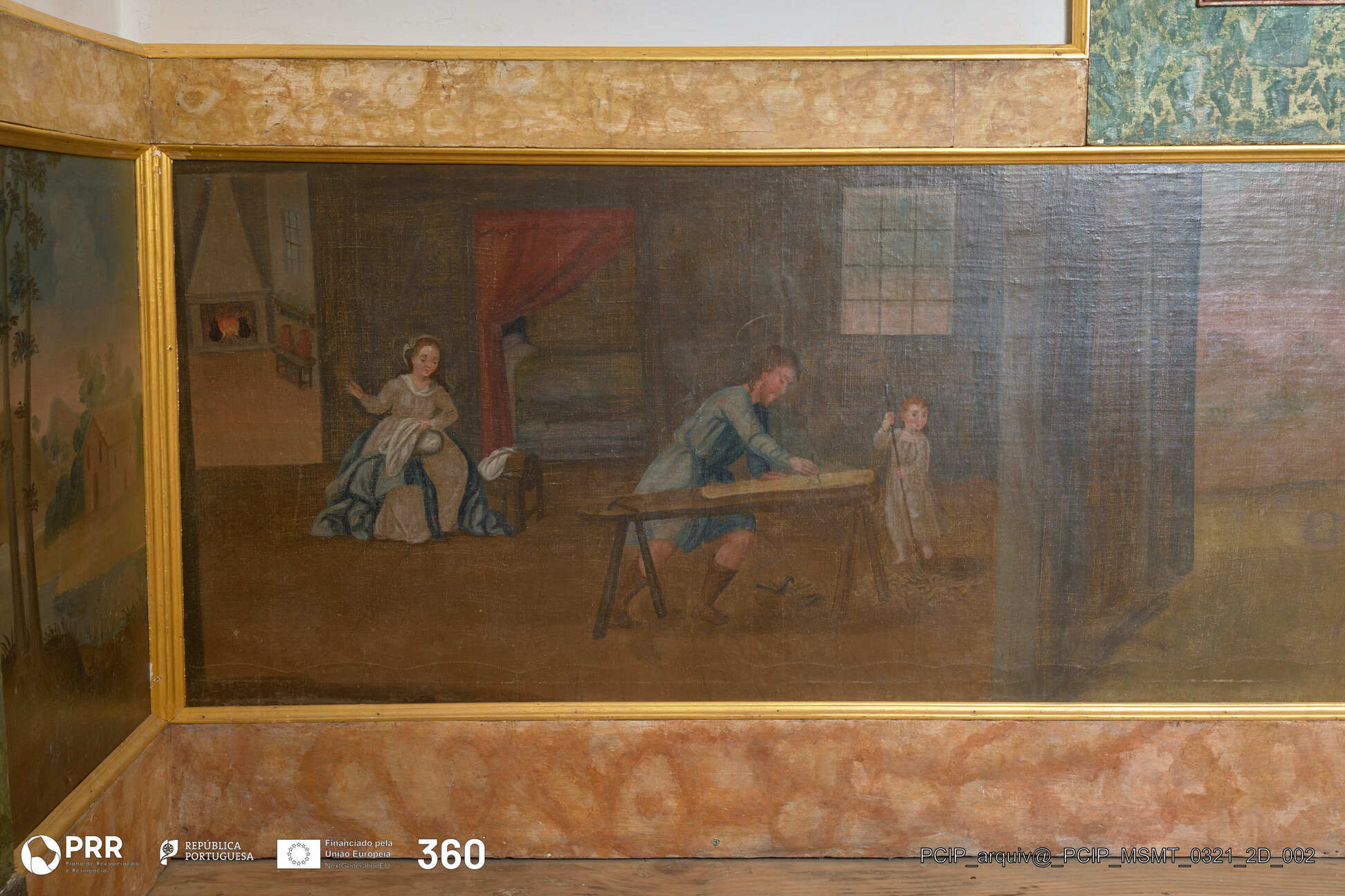 Matéria/Técnica: Tintas a óleo sobre tela / Pintura; Cronologia: 1783-1786; Autoria: Frei José Teixeira Barreto; Dimensões (cm): 65 x 340.