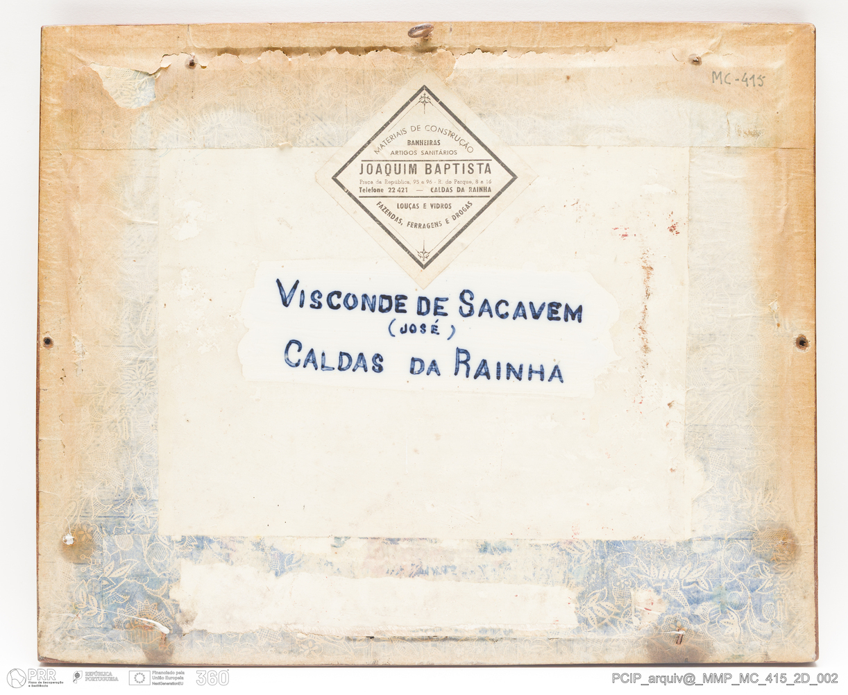Matéria/Técnica: Barro branco moldado. Vidrado azul e branco; Cronologia: século XIX; Autoria: João Aleluia / Fábrica da Fonte Nova, Aveiro, Portugal; Dimensões (cm): Altura: 24; Largura: 30.